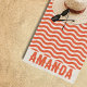 personalised Coastal theme beach towel orange and cream with wavy stripes are the perfect vacation gift, birthday gift or bridesmaid gift for a family vacation gift.