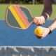 Create your own retro personalised pickleball paddle. Features abstract vintage stripes design and custom name in a classic style typography.