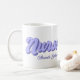 Fun purple and white personalised nurse mug featuring the word Nurse in a bold textured retro font, and your custom name.
