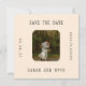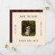 This retro-inspired save the date card features a warm neutral background paired with a rich burgundy accent for a timeless and stylish look. The centered photo layout adds a personal touch, making it perfect for couples who want to showcase their favorite moment.