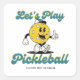 Add these fun stickers to your next pickleball party. Design features a funny retro pickleball cartoon mascot wearing a cap and the words "Let's Play Pickleball" in a fun retro font. Personalise with your custom text or delete. Great for a pickleball birthday party, pickleball weekend gathering, getaway or everyday fun at the PB club or your private court. Pickleball - the best sport ever!!