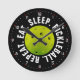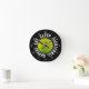 😍 Retro Pickleballs on black background. Perfect as a gift for pickleball player. with numbers Round Clock 😍 Retro Pickleballs / black motif and custom text. Eat, Sleep. Pickleball. Repeat and real green pickleball