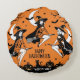 A cheeky and chic Halloween design featuring glamourous pin-up witches, festive jack-o'-lanterns, and spooky silhouettes, all set against a vibrant orange backdrop.
