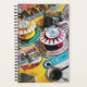 Digital art image of a retro pinball machine on the cover of a small planner.