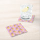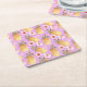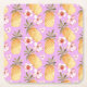 Retro pineapple tropical print on lilac background square paper coaster