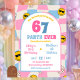 retro pink and blue checkered 67 joint birthday invitation