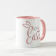 This simply adorable two-toned Easter mug says Happy Easter in a pastel pink and blue retro script with a cute pair of bunny rabbit ears on top of the 'E' in Easter.