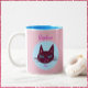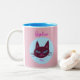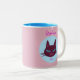 Retro Pink and Blue Purring Kitty Two-Tone Coffee Mug