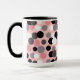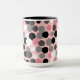 Pink, black and grey polka dots on a light pink background give this mug retro style. This mug is great for modern or retro style kitchen decor. The design is from original art.