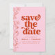 Retro Pink And Red Floral Save The Date Invitation