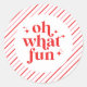 Retro Pink and Red Oh What Fun Classic Round Sticker