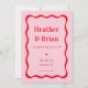 Retro Pink and Red Squiggle Unique Wedding Save The Date