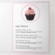 Chic pink and white stripes bring a retro personality to this bakery themed tri-fold brochure. Reminiscent of ice cream parlours and candy shops of yesterday, this design is sure to bring a touch of nostalgia to your business brand. Created for bakeries, cake decorators, catering companies, cupcakes, home baked goods or any business looking for a stylish motif. Your name or business name is simply styled in a black square on the front. Update the customisable text to fit your brand, and personalise the details throughout the brochure for your own usage. These 5x7 brochures are perfect to display your price lists and menu of services, or describe your product line. Add any additional photos for even more customisation. A great marketing piece to hand out to customers or to quickly introduce your business. Please contact the designer for help with special typesetting or layout variations. Art and design © 1201AM Design Studio | www.1201am.com