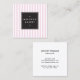 Chic pink and white stripes bring a retro personality to this bakery business card. Reminiscent of ice cream parlours and candy shops of yesterday, this design is sure to bring a touch of nostalgia to your business brand. Created for bakeries, cake decorators, catering companies, sweets, home baked goods or any business looking for a stylish motif. Your name is simply styled in a black square on the front, while your contact info and details are available on the backside. Design © 1201AM Design Studio