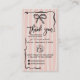 Retro Pink beige Bow Logo QR Thank You Order Business Card