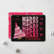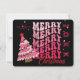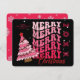 Retro Pink & Black Typography Merry Christmas Tree Holiday Card
