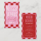 Modern beauty salon or spa business card with retro pink checkered background, trendy fonts and layout. The groovy red and pink checkered pattern adds a really trendy feel to this girly calling card design, perfect for your makeup studio, lash salon, nails spa or any other business. You can customize this feminine business card with your logo and business details to make it your own.