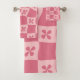 Retro Pink Chequered Floral Pattern Bath Towel Set