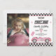 Retro Pink Fast One Race Car 1st Birthday Photo Invitation
