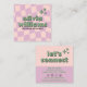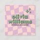 Retro Pink Green Pastel Groovy Checkered Girly Fun Square Business Card