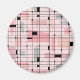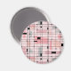 This Retro Pink Grid and Starbursts Round Magnet is where vintage style meets modern day. It features a light pink background with kitschy, off kilter squares and rectangles in dove grey and three shades of pink. The whimsical blocks of colour are overlayed and worked into some of the grid intersections. There are also black rectangles with black vertical and horizontal lines forming a grid pattern. Black starburst designs and squares are placed sporadically throughout this mid century modern tapestry of colour. This design features the most common pink colours found in vintage bathrooms. Grab your go-go boots and bell-bottoms and enjoy this throwback to the 1960s.