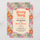 Green, orange, yellow and red retro groovy flower seamless pattern Birthday Invitation. This fun and vibrant design is perfect for anyone looking to add a touch of retro flair to their special day. With its bold colours and groovy floral pattern, this invitation is sure to set the tone for a memorable celebration.