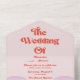 Retro Pink Orange Typography QR Code Wedding All In One Invitation