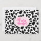 Girls photo first rodeo birthday invitation featuring a disco ball, cowgirl hat, cowgirl boots and some black cow print. The background is also pink and the design also features some retro stars.