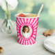 Retro Pink Queen of Hearts Birthday Party Photo Paper Cups featuring a vintage Alice in Wonderland-inspired design with whimsical playing cards, pink and red heart motifs, and a charming retro aesthetic. Perfect for a Mad Hatter tea party, Wonderland-themed birthday, or heart-themed celebration, these customisable disposable cups allow you to add a personal photo, creating a magical and personalised touch to your party drinkware.