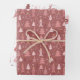 Retro Pink Reindeer and Christmas Trees Wrapping Paper Sheet