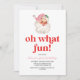 Oh What Fun! Retro pink Santa Christmas birthday invitation.