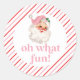 Retro Pink Santa Oh What Fun Classic Round Sticker