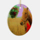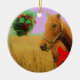 Retro pink sky Christmas Horse Ceramic Tree Decoration
