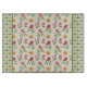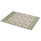 Whimsical retro inspired  panel features pink birds on branches with yellow flowers, surrounded by green dot grid pattern