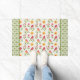 Whimsical retro inspired panel features pink birds on branches with yellow flowers, surrounded by green dot grid pattern