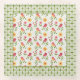 Whimsical retro inspired panel features pink birds on branches with yellow flowers, surrounded by green dot grid pattern