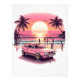 summer beach scene, retro sunset, classic car artwork, palm tree silhouettes, ocean beach vibes, vintage beach style, nostalgic illustration, pink sunset design, summer nostalgia, escapism artwork