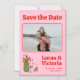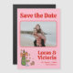 Retro Pink Whimsical Photo Wedding Save the Date Magnetic Invitation