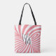 Retro Pink White Abstract Zebra Pattern Initials Tote Bag