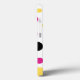 Retro Pink White Monogram Polka Dots iPhone Case. A fun and fresh design with various polka dots in hot pink, periwinkle, yellow, and black on a white background. Personalise the phone case with your monogram and name and add a little playfulness to your daily life with this colourful, cheerful design.