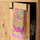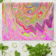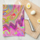 Retro Pink, Yellow and Magenta Abstract Groovy Art Tea Towel