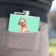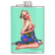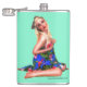 Hip flask with a nostalgic vintage glamour feel, featuring original pinup artwork ©"Miss Cherrie Au Lait – Beach Girl".