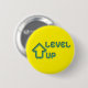 Ready to reach the next stage? This "Level Up" pin button features a classic 8-bit pixel art design on a bold neon yellow background.