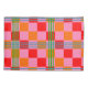 has a mid-century modern design of red, pink, and orange squares and green and blue lines forming a plaid design. If you like different colors, message me.