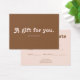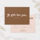 Give the perfect present with a gift card that's as stylish as it is thoughtful. This card features a warm and sophisticated color palette, blending soft blush pink with rich, earthy brown. The front makes a charming statement with the quote "A gift for you," presented in "Tango," a fun and decorative retro font full of personality. On the back, you'll find a clean, simple layout with space for "To" and "From," plus any other details you need. It's the ideal way to give a gift they're sure to love, all wrapped in one beautifully designed package.