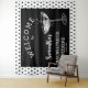 personalised retro bachelorette party tapestry in black and cream with a cocktail glass is perfect as a bachelorette party photo backdrop. Celebrate your bridal shower in style with the perfect cocktail party theme in bold monochrome, the perfect theme for the nostalgic vintage 70s bride and her bridesmaids.