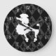 This fun, retro clock features an outline of a poodle in a black and white color scheme.