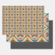 Gift Giving Package Wrapping Paper set of 3 sheets printed with Retro Pop Art Geometric Colour Block Pattern by TheFabricSeal print on demand shop at Zazzle.com #ZazzleMade ©️Original. https://www.zazzle.com/store/thefabricseal