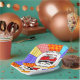 Cute cartoon graphics of a vintage retro car and bride and groom in convertible we got married elopement after party paper plates.