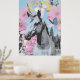 Retro Pop Art Pink and Blue Unicorn Collage Poster